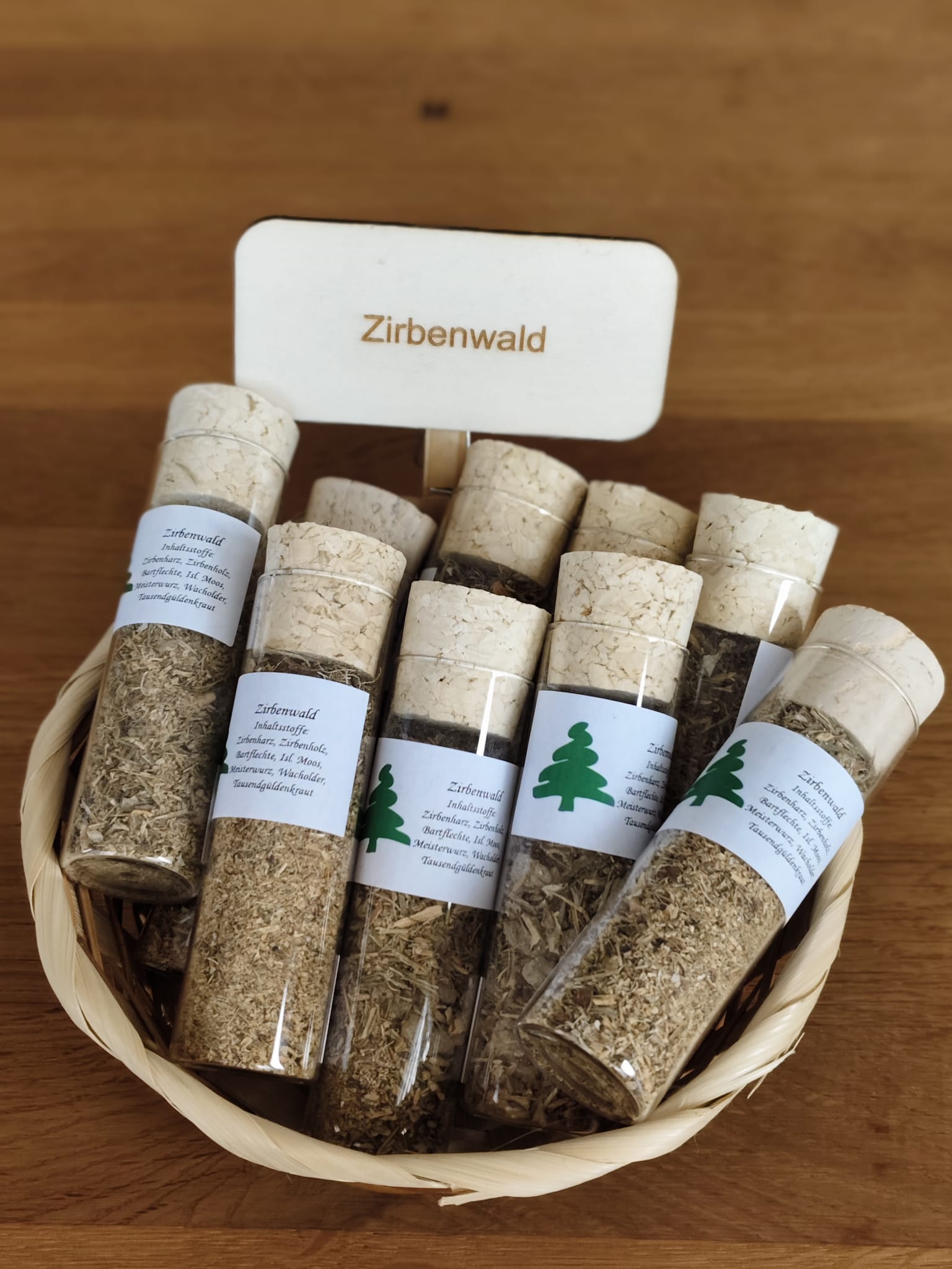 Zutaten: Zirbenharz, Zirbenholz, Bartflechte, Isländ. Moos, Meisterwurz, Wacholderholz, Wacholderspitzen, Tausendgüldenkraut